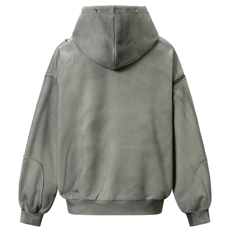 This hoodie features a full zip-up front that allows versatile styling options. The diamond patchwork design adds structure and visual depth, while the rivet details give it a rugged, street-inspired edge. Its oversized Y2K silhouette enhances the relaxed streetwear vibe, making it perfect for expressive outfits.