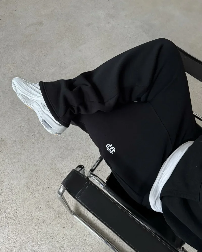 These sweatpants feature a straight-leg baggy silhouette that reflects classic Y2K streetwear trends. The embroidered detailing adds a premium touch, giving the design a more refined and stylish appearance. Their minimal yet expressive look makes them easy to pair with a wide range of outfits.