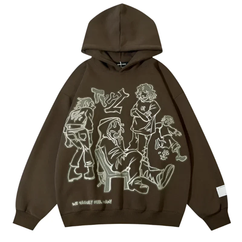 The Y2K Streetwear Cartoon Hoodie – Retro Graphic Style brings bold personality and everyday comfort together in one standout piece. Designed with a relaxed oversized fit, it offers a laid-back streetwear vibe while still maintaining a clean and modern silhouette. The eye-catching cartoon-inspired graphic adds a nostalgic Y2K aesthetic, making it perfect for anyone who loves expressive, retro fashion.